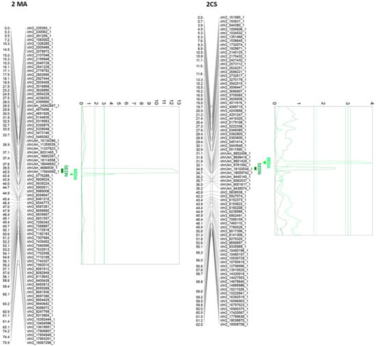 Each parental linkage map covered more than 1500 cM with an average density of 1 cM between two adjacent SNPs, which corresponds on average to 302 kb in MA and 324 kb in CS (Table S2). Although some regions remained without coverage, 7.2% and 9.1% of the genome of MA and CS, respectively, the achieved density was suitable for candidate gene identification.
