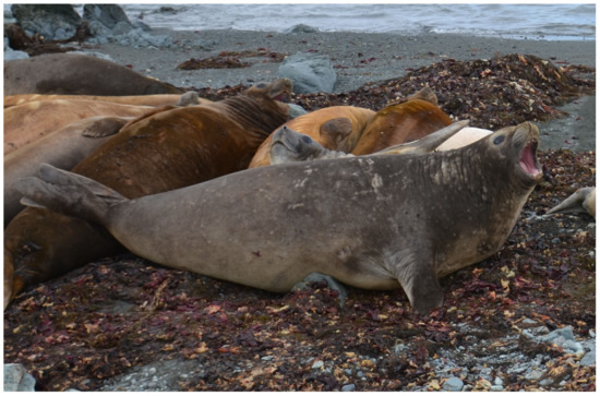 - Le Boeuf, B.J.; Laws, R.M. Elephant Seals: Population Ecology, Behavior, and Physiology; University of California Press: Berkeley, CA, USA, 1994. [Google Scholar]
