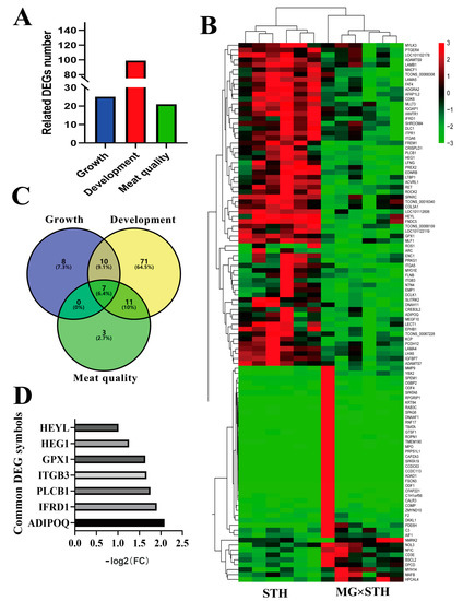 3.3. Identification of the Candidate DEGs Related to the Production Performance and Meat Quality in MG × STH and STH Sheep