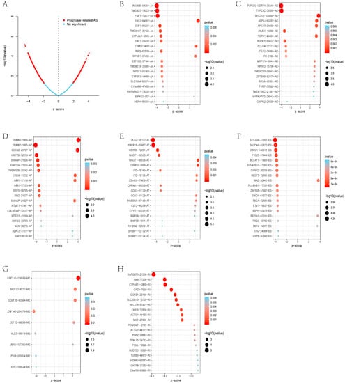 - Lin, P.; He, R.-Q.; Ma, F.-C.; Liang, L.; He, Y.; Yang, H.; Dang, Y.-W.; Chen, G. Systematic Analysis of Survival-Associated Alternative Splicing Signatures in Gastrointestinal Pan-Adenocarcinomas. EBioMedicine 2018, 34, 46–60. [Google Scholar] [CrossRef]