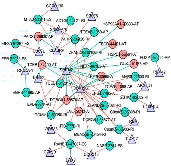 2.5. Building of the Potential Splicing Factor–Alternative Splicing Regulatory Network and Enrichment Analysis