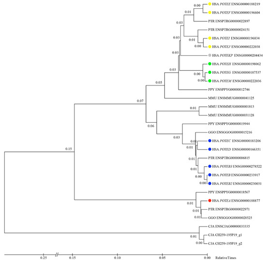 3.6. Inferring the Evolutionary Relationships of POTE Paralogs
