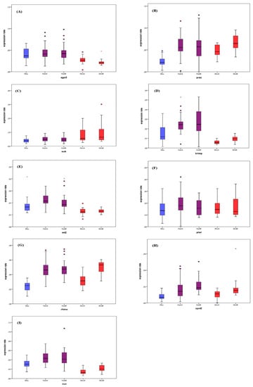 - Schmittgen, T.D.; Livak, K.J. Analyzing real-time PCR data by the comparative CT method. Nat. Protoc. 2008, 3, 1101–1108. [Google Scholar] [CrossRef]