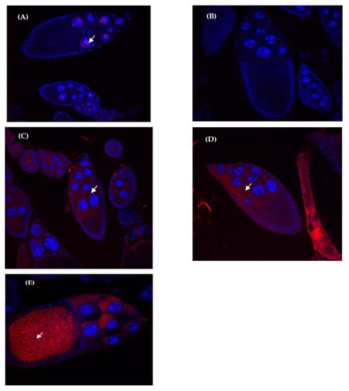 - Becalska, A.N.; Gavis, E.R. Lighting up mRNA localization in Drosophila oogenesis. Development 2009, 136, 2493–2503. [Google Scholar] [CrossRef]