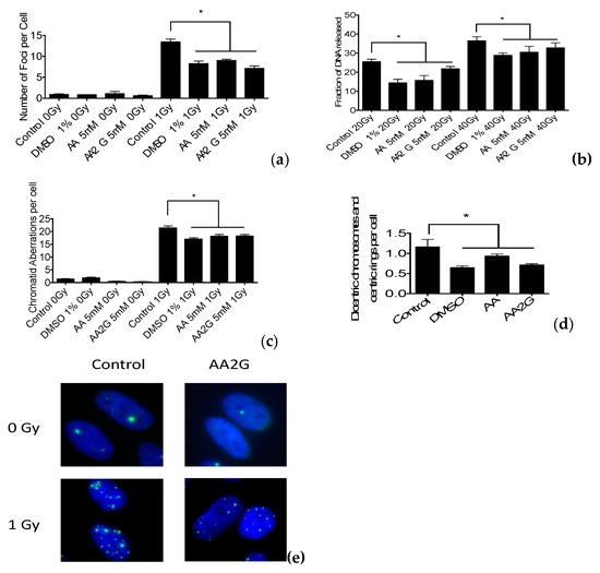 - Kinashi, Y.; Tanaka, H.; Masunaga, S.; Suzuki, M.; Kashino, G.; Yong, L.; Takahashi, S.; Ono, K. Ascorbic Acid 2-glucocide reduces micronucleus induction in distant splenic t lymphocytes following head irradiation. Mutat. Res. 2010, 695, 69–74. [Google Scholar] [CrossRef]
