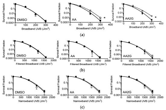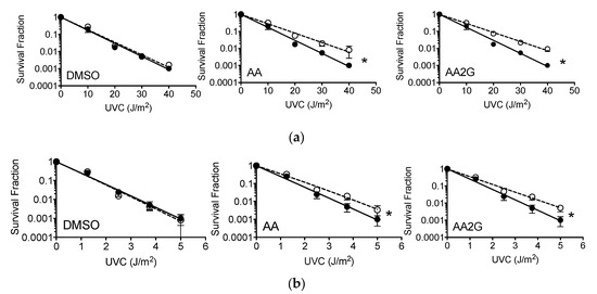 APA StyleMaeda, J., Allum, A. J., Mussallem, J. T., Froning, C. E., Haskins, A. H., Buckner, M. A., Miller, C. D., & Kato, T. A. (2020). Ascorbic Acid 2-Glucoside Pretreatment Protects Cells from Ionizing Radiation, UVC, and Short Wavelength of UVB. Genes, 11(3), 238. https://doi.org/10.3390/genes11030238