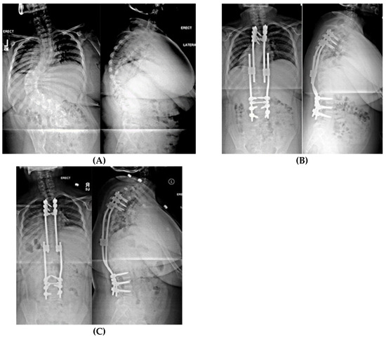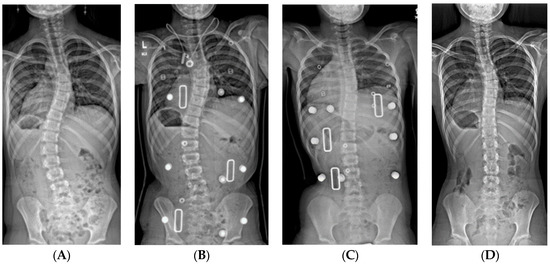 - Cahill, P.J.; Marvil, S.; Cuddihy, L.; Schutt, C.; Idema, J.; Clements, D.H.; Antonacci, M.D.; Asghar, J.; Samdani, A.F.; Betz, R.R. Autofusion in the immature spine treated with growing rods. Spine (Phila PA 1976) 2010, 35, E1199–E1203. [Google Scholar] [CrossRef]