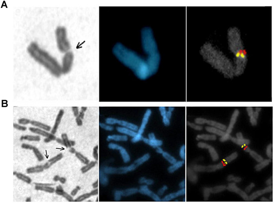 - Mishmar, D.; Mandel-Gutfroind, Y.; Margalit, H.; Kerem, B. Common fragile sites: G-band characteristics within an R-band. Am. J. Hum. Genet. 1999, 64, 908–910. [Google Scholar] [CrossRef] [PubMed][Green Version]