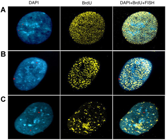 - Pelliccia, F.; Bosco, N.; Curatolo, A.; Rocchi, A. Replication timing of two human common fragile sites: FRA1H and FRA2G. Cytogenet. Genome Res. 2008, 121, 196–200. [Google Scholar] [CrossRef]