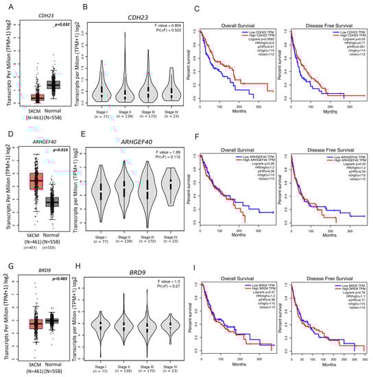 3.2. The Impact of CDH23, ARHGEF40 and BRD9 in Sporadic Melanoma