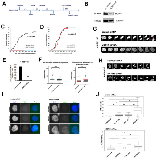 The following are available online at https://www.mdpi.com/2073-4425/11/4/406/s1, Video S1: HeLa cells stably expressing fluorescent histone H2B-Red1 and αTubuline-GFP after transfected with control-siRNAs and treated with ICRF-187, Video S2: HeLa cells stably expressing fluorescent histone H2B-Red1 and αTubuline-GFP transfected with MCPH1-siRNAs and treated with ICRF-187, Video S3: HeLa cells stably expressing fluorescent histone H2B-Red1 and αTubuline-GFP transfected with MCPH1-siRNAs and treated with ICRF-187.