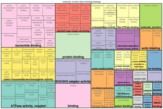 The functional classification of both gene sets indicates that there are several GO categories that were common for both time points (see the treemaps depicted in Figure 3 and Figure 4 and the top 15 GO terms in Table 1 and Table 2). In particular, the transportation of cations across membranes was the most salient function for the underlying mechanism of ESS at both time points. In this regard, calcium ions, being the main constituent of the eggshell, are supplied in large amount to the uterine fluid by transepithelial transport. In addition, other cations such as sodium, magnesium, and potassium are exchanged across the uterine endothelium to maintain the cell homeostasis [4,5]. This transmembrane transport remains important during the production cycle to ensure the development of an eggshell. The gene set analysis further reveals that the activities pertaining to ATPase, GTPase, calmodulin binding, calmodulin-dependent protein kinase, and Smad binding were specific for ESS1. Meanwhile, functions related to hormone/vitamin D receptor binding, chaperone binding, and Wnt-activated receptors were more relevant for ESS2.