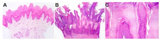 Histologically, the stratum corneum was markedly expanded by villous projections of orthokeratotic hyperkeratosis. The subtending granular layer of the epidermis was mildly hyperplastic. The samples had no significant inflammation (Figure 2).