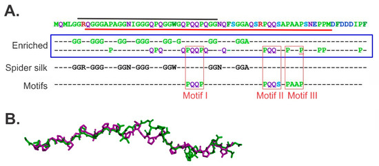 How does binding between the linker domain and a partner OB-fold occur? The first insight into the mechanism of binding came from the analysis of the primary amino acid sequence [60]. This analysis revealed that this region of SSB is over-represented in glycine, glutamine and proline residues (Figure 3A and [64,67]). Several of these are arranged in repeats with as many as seven spider silk motifs. These are proposed to impart both flexibility and tensile strength to the linker, enabling SSB to bind to partners ranging in size from 20–80 kDa and to itself, to produce a stable complex on ssDNA. It was also shown that the N-terminal half of the linker can be modeled on a collagen strand further supporting the idea that these elements contribute to the flexibility of the linker (Figure 3B and [63]). Finally, and perhaps most importantly, the analysis revealed the presence of three, conserved PXXP motifs (Figure 3A, motifs highlighted by red boxes).