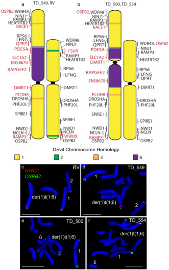 We thank Greg Woods (Menzies Institute, University of Tasmania) for kindly providing DFT2 cell lines (TD_500, TD_549 and TD_554) and Kate Swift for metaphase chromosome preparations of RV. We thank Maya Kruger-Andrzejewska, Barrie Titauleur, Tanya Skinner, Kali Notaras and Jenny McKnight for assistance with BAC mapping experiments.