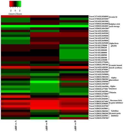 Although the transcriptome analysis has been performed in hexaploid wheat during grain development [,], a detailed comparative transcriptional characterization of bread wheat and its diploid progenitors has not yet been reported. It would be highly informative to study the stage-specific expression of these important classes of genes during the grain developmental process in bread wheat and its diploid progenitors. This would help in understanding the changes that occurred in the grain quality of wheat during the evolution from ancient wheat to modern bread wheat.