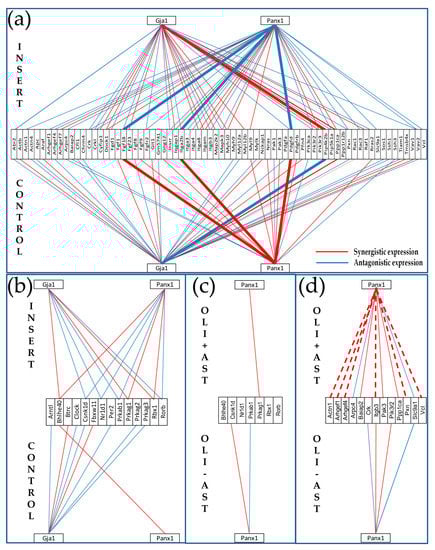 - Iacobas, D.A.; Iacobas, S.; Werner, P.; Scemes, E.; Spray, D.C. Alteration of transcriptomic networks in adoptive-transfer experimental autoimmune encephalomyelitis. Front. Integr. Neurosci. 2007, 1. [Google Scholar] [CrossRef] [PubMed]