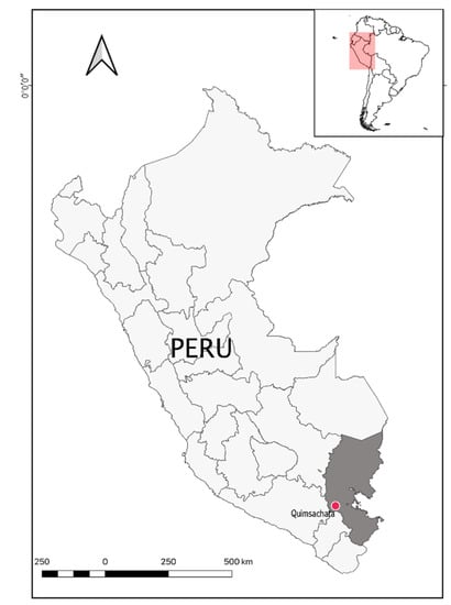 - Fernández, B.S. Situación Actual de los Camélidos Sudamericanos en Perú. Proyecto de Cooperación Técnica en Apoyo de la Crianza y Aprovechamiento de los Camélidos Sudamericanos en la Región Andina Tcp/Rla/2914; Organización de las Naciones Unidas para la Agricultura y la Alimentación (FAO): Roma, Italy, 2005. [Google Scholar]