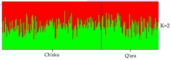 3.2. Genetic Differentiation between Ch’aku and Q’ara