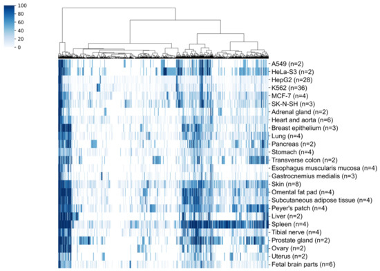 - Lizio, M.; Harshbarger, J.; Shimoji, H.; Severin, J.; Kasukawa, T.; Sahin, S.; Abugessaisa, I.; Fukuda, S.; Hori, F.; Ishikawa-Kato, S.; et al. Gateways to the FANTOM5 promoter level mammalian expression atlas. Genome Biol. 2015, 16, 22. [Google Scholar] [CrossRef]