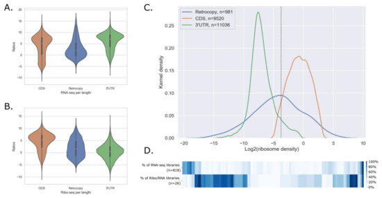 - Michel, A.M.; Kiniry, S.J.; O’Connor, P.B.F.; Mullan, J.P.; Baranov, P.V. GWIPS-viz: 2018 update. Nucleic Acids Res. 2018, 46, D823–D830. [Google Scholar] [CrossRef] [PubMed]