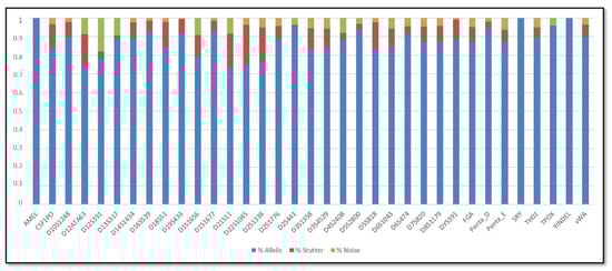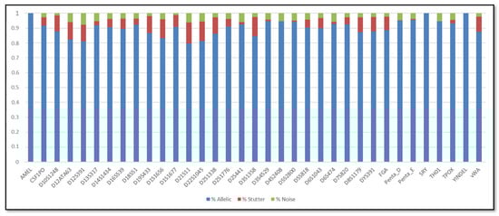Converge software v2.1 (Thermo Fisher Scientific, Waltham, MA, USA) was then used to interpret STR results, as indicated in the user’s manual. The Depth of Coverage (DoC) was calculated as the number of unique reads specific for each locus; the Sequence Coverage Ratios (SCRs), including the Allele Ratio (AR), stutter ratio and noise ratio, were determined as the relative proportion of sequences for alleles, stutter and noise [2].