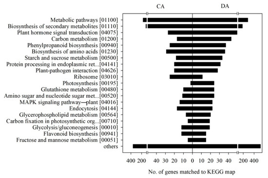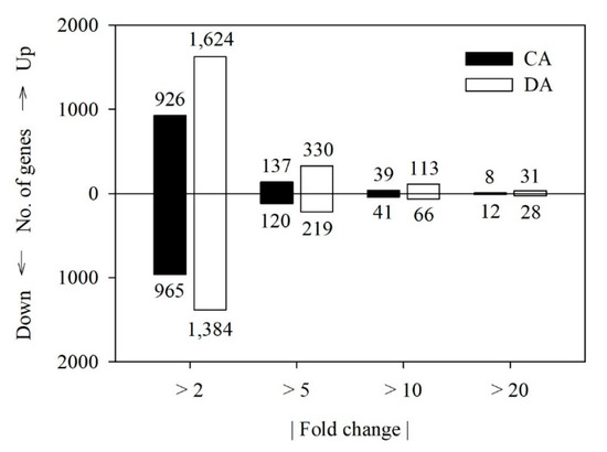 | DEGs down- and up-regulated during CA and DA, respectively | ||