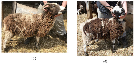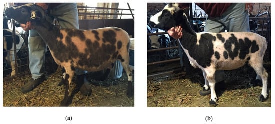 - Jacob Sheep Pedigree Search. Available online: https://jsba.org/search.html (accessed on 20 April 2018).