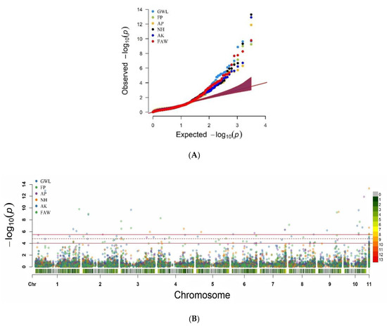 - Bradbury, P.J.; Zhang, Z.; Kroon, D.E.; Casstevens, T.M.; Ramdoss, Y.; Buckler, E.S. TASSEL: Software for association mapping of complex traits in diverse samples. Bioinformatics 2007, 23, 2633–2635. [Google Scholar] [CrossRef]