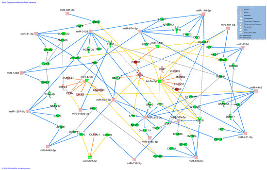 3.2. DE miRNA and DEGs Co-Expression Network and Functional Classification
