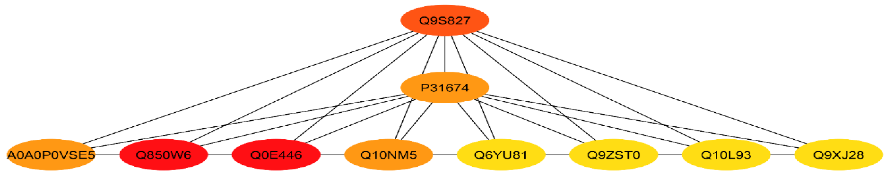 2.9. RT–qPCR-Based Validation of Proteomic Data
