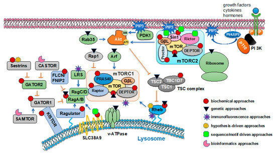 In addition to the powerful biochemical protein purification approaches, key mTOR signaling components were also identified by genetic approaches in yeast, Drosophila, and mammalian cells as detailed below.