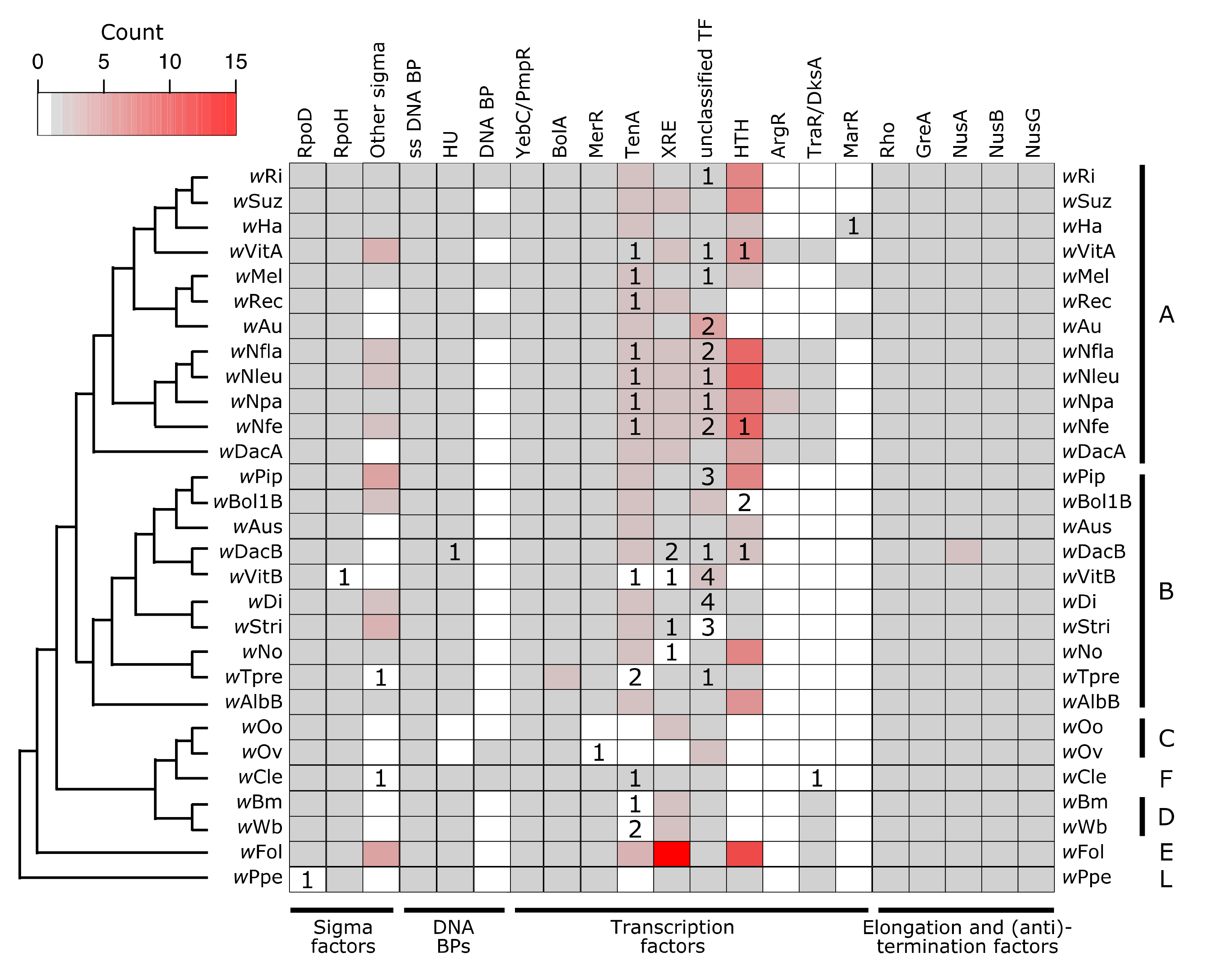 - Li, Z.; Carlow, C.K. Characterization of transcription factors that regulate the type IV secretion system and riboflavin biosynthesis in Wolbachia of Brugia malayi. PLoS ONE 2012, 7. [Google Scholar] [CrossRef] [PubMed]