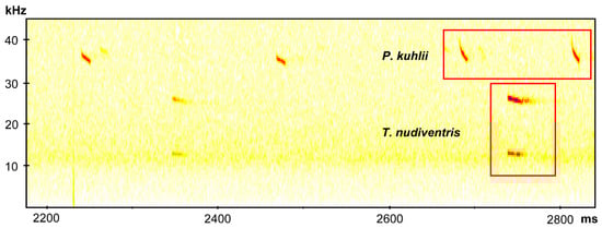 - Fenton, M.B.; Bell, G.P. Recognition of species of insectivorous bats by their echolocation calls. J. Mammal. 1981, 62, 233–243. [Google Scholar] [CrossRef]