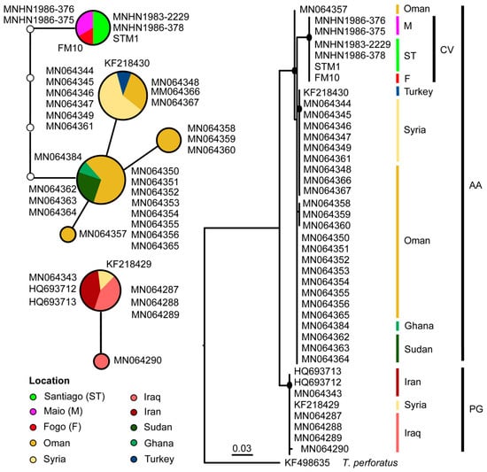 Borloti I, Dinis H, Vasconcelos R. Bats Out of Africa: Disentangling the Systematic Position and Biogeography of Bats in Cabo Verde. Genes. 2020; 11(8):877. https://doi.org/10.3390/genes11080877