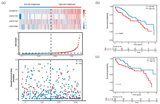 PI = 0.0031 × AC025016.1 expression + 0.0021 × LINC01164 expression + 0.0130 × LINC01183 expression+0.0064 × LINC01269 expression.