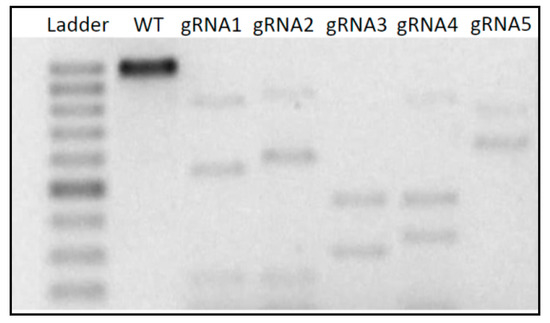 - Hsu, P.D.; Scott, D.; Weinstein, J.A.; Ran, F.A.; Konermann, S.; Agarwala, V.; Li, Y.; Fine, E.J.; Wu, X.; Shalem, O.; et al. DNA targeting specificity of RNA-guided Cas9 nucleases. Nat. Biotechnol. 2013, 31, 827–832. [Google Scholar] [CrossRef] [PubMed]