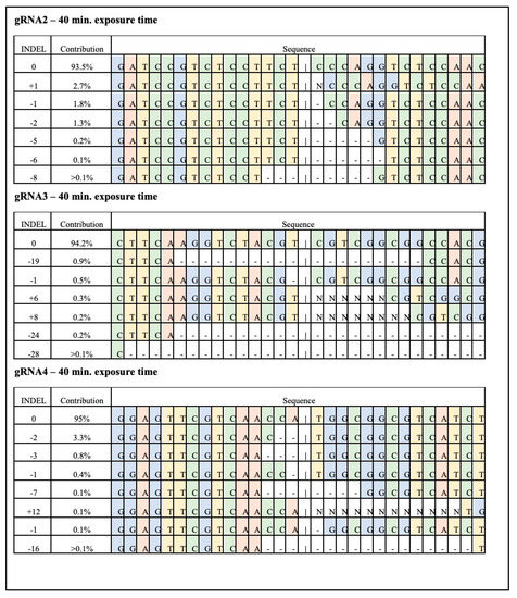 | gRNA4 only | 20 | 0 | 0 | 0 | 0 | |