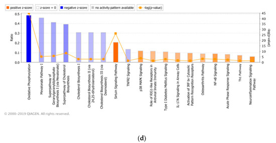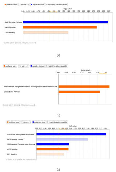 - Kramer, A.; Green, J.; Pollard, J., Jr.; Tugendreich, S. Causal analysis approaches in Ingenuity Pathway Analysis. Bioinformatics 2014, 30, 523–530. [Google Scholar] [CrossRef]