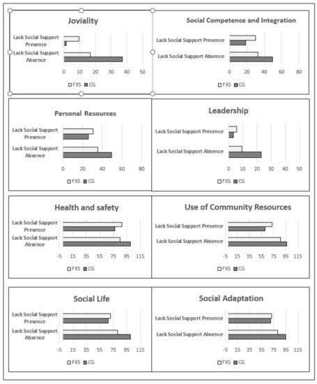 | CG “Lack of Social Support” | Significance | FXS “Lack of Social Support” | Significance | |||