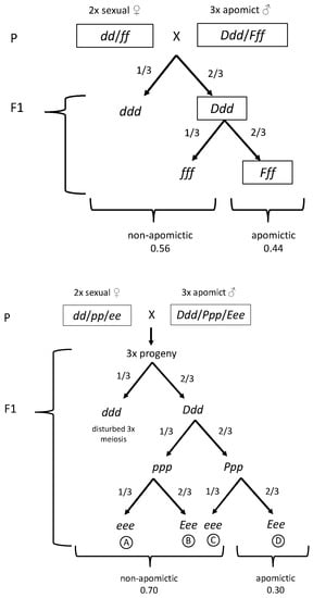 2.1. The Cross between a Sexual Diploid and an Apomictic Triploid