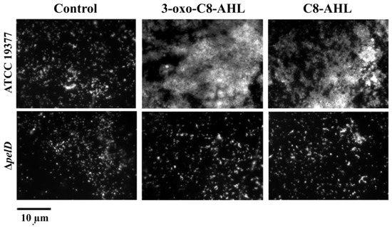 APA StyleDíaz, M., San Martin, D., Castro, M., Vera, M., & Guiliani, N. (2021). Quorum Sensing Signaling Molecules Positively Regulate c-di-GMP Effector PelD Encoding Gene and PEL Exopolysaccharide Biosynthesis in Extremophile Bacterium Acidithiobacillus thiooxidans. Genes, 12(1), 69. https://doi.org/10.3390/genes12010069