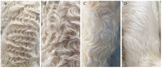 Different lambskin pattern types of Hu sheep. Note: (A): Extremely curved. (B): Medium curved. (C): Little curved. (D): Straight.