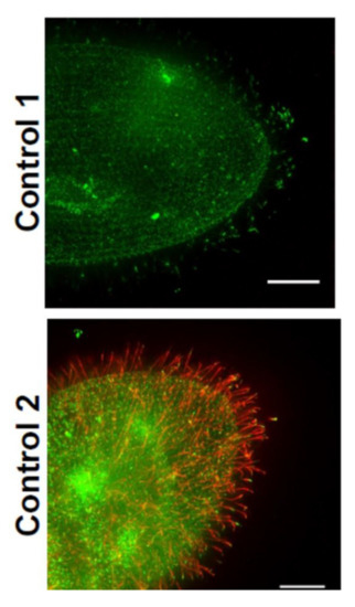 - Bayless, B.A.; Galati, D.F.; Junker, A.D.; Backer, C.B.; Gaertig, J.; Pearson, C.G. Asymmetrically localized proteins stabilize basal bodies against ciliary beating forces. J. Cell Biol. 2016, 215, 457–466. [Google Scholar] [CrossRef]