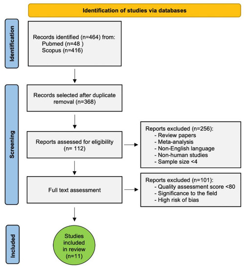 For each question a positive answer was scored as 1 and a negative as 0 (Table S1). Each author classified and rated each record independently from each other. All the authors discussed the differences observed in the scores in order to identify a final consensus score. The study selected achieved >80% of the total score (positive response to at least 8 questions out of 10; Table 1). The risk of bias was assessed by Robvis R package [30]. Studies were evaluated based on their relative low, moderate, or high risk of bias.
