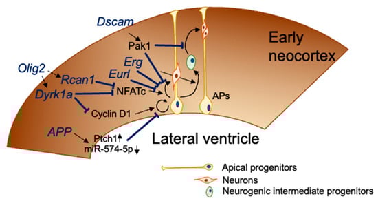 According to the “gene dosage hypothesis” [8], any one of the over 400 overexpressed genes in Hsa21 [9] may contribute to the impaired neurogenesis and dendritic pathologies. Several candidate genes have recently been suggested.