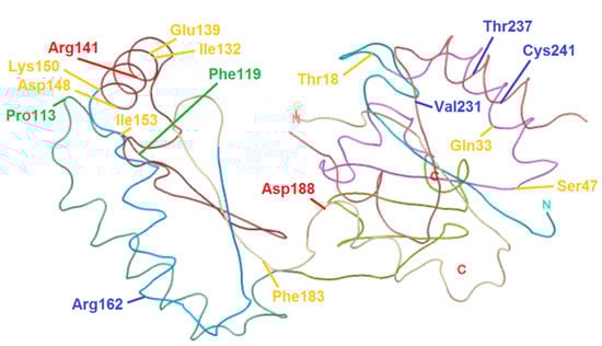 3.3. Nucleotide Changes Involving the Folding or Stabilization Domain