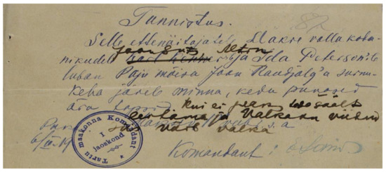 The Stamp impression with the text “Tartu maakonna Komandant” (Commandant of Tartu County).