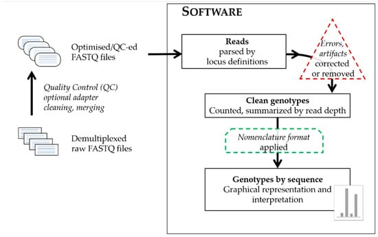 It is a good practice to perform independent Quality Control of the raw data prior to analysis, starting by monitoring the main characteristics of the dataset before and after any additional clean-up steps, which can be done, for example, using the FastQC program [102]. The additional steps of detailed adapter trimming using additional software (for example Trimmomatic [103], Cutadapt [104], seqtk [105]) or the merging of paired-end reads (using FLASH [106], BBMerge [107], CASPER [108]) may improve the analysis downstream. There are instances where using additional clean-up tools on raw data can improve the analysis. For example, removing erroneous reads and/or low-quality parts of reads specific to chemistry and platform can lead to unambiguous allele calls and can even improve retrieved coverage values for the dataset.