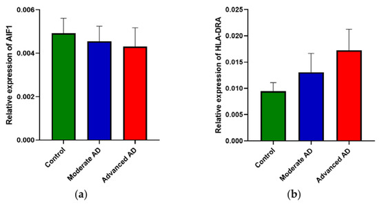 2.2. RNA Expression of AIF1 and HLA-DRA Was Unchanged in AD